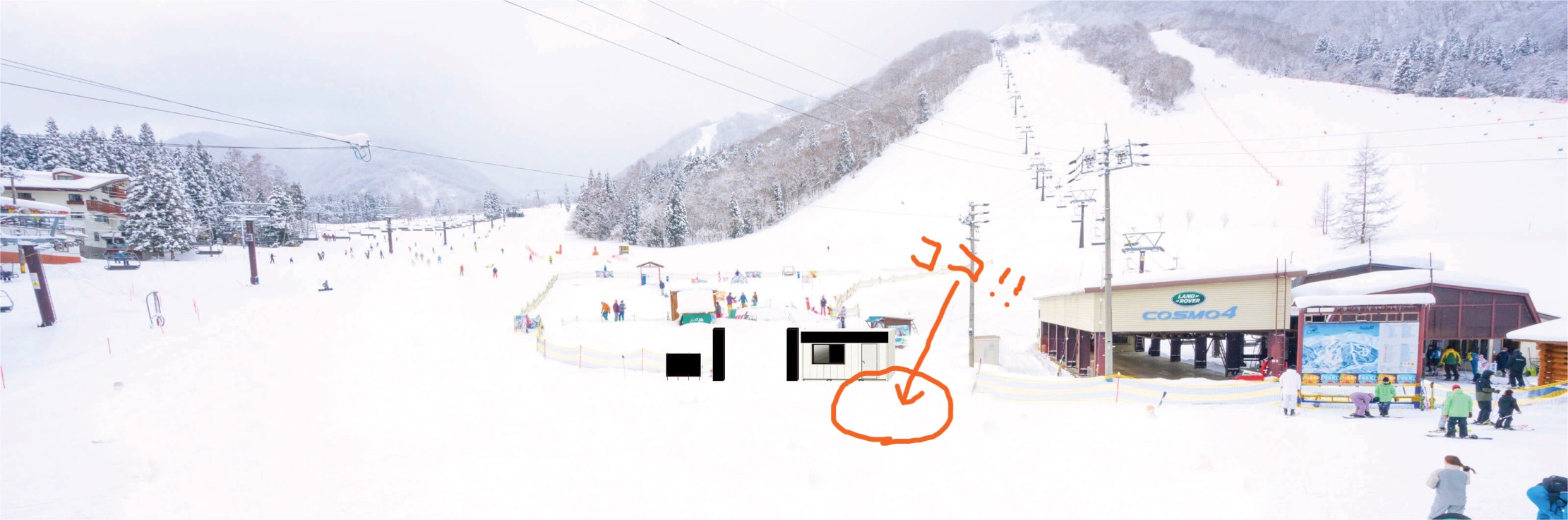 いいもりゲレンデ麓にある「STEP UP LAND」受付小屋前 へお越しください。
