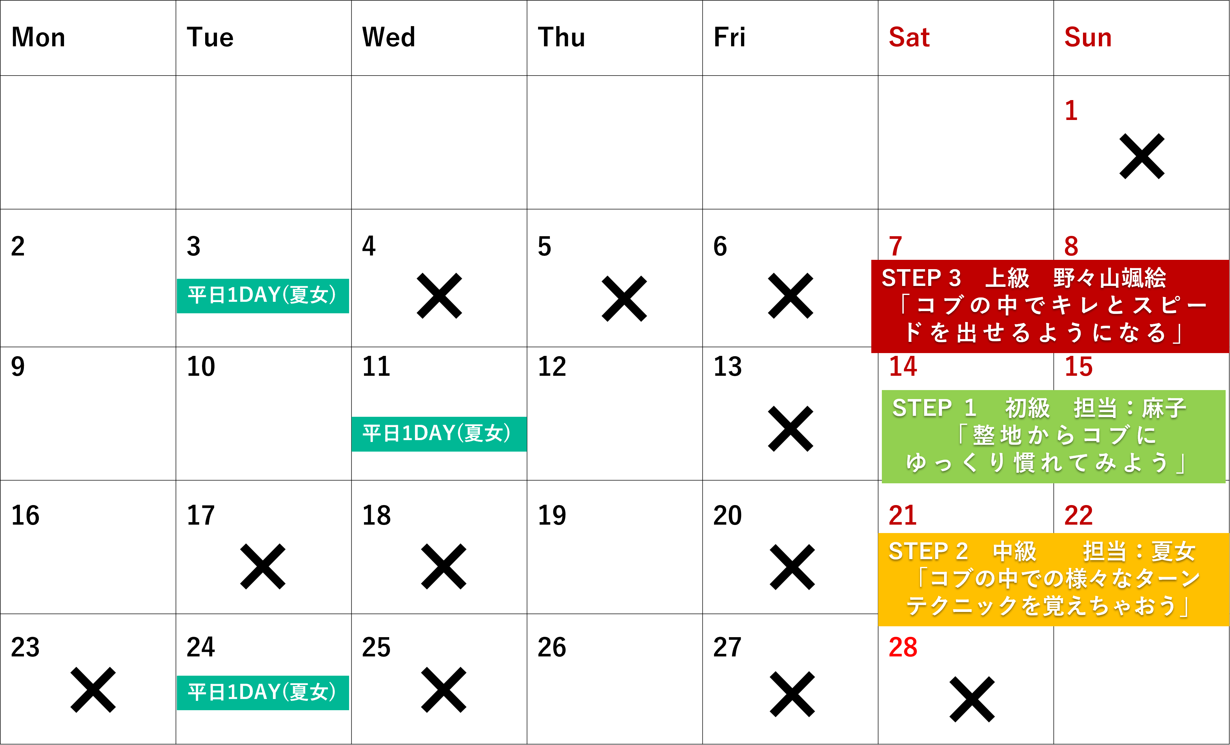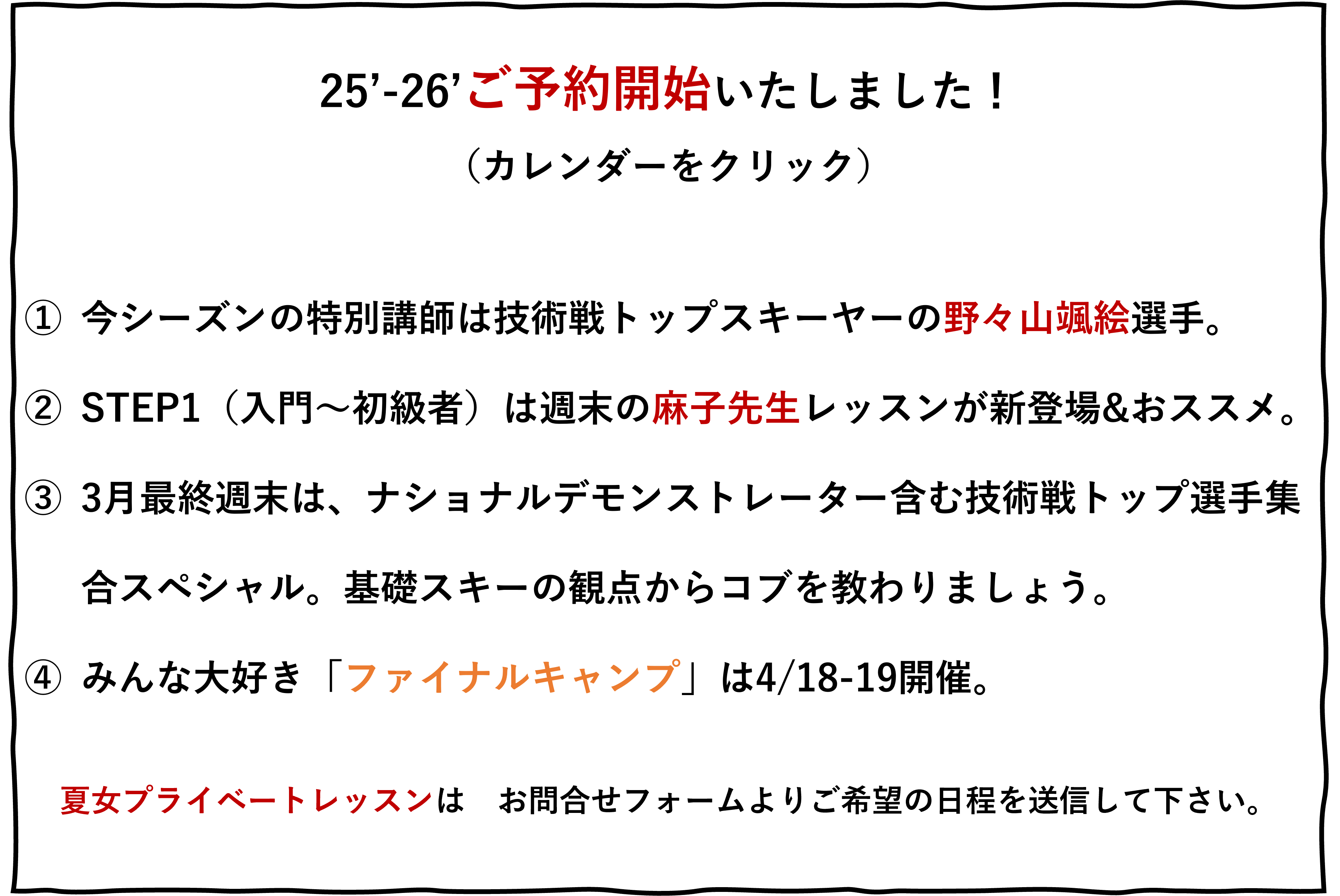レッスンで眉間にしわを寄せるのを止めちゃいませんか?!コブって楽しい!上手くなるんだ!スキーって自由なんだ!そんな風に思っていただけたら・・♪